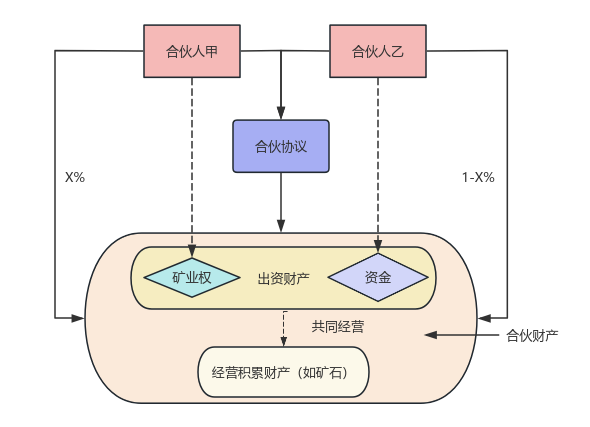 同时,合作方的权利仍具有债权属性:一方面,合伙合同终止前,合伙人不得请求分割合伙财产,终止后需清算并以货币形式分配剩余财产,出资人本质上享有出资份额对应价值的返还请求权;另一方面,共有人的管理费用分担、财产分割等权利均以请求权形式呈现。因此,构成合伙合同时,合作方的权利是准共有(矿业权使用权、收益权)与债权的混合形态,对外主张仍依赖合同相对性与清算机制。